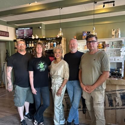 Van links naar rechts: Ronny (Biergek), Jolanda (Biergek), Marlyn (De Buorskip), Jan (Soundfarm) en Bauke (De Buorskip).